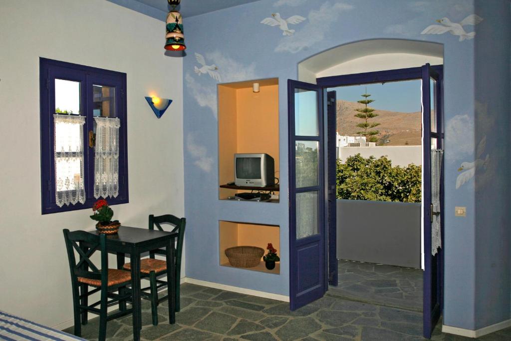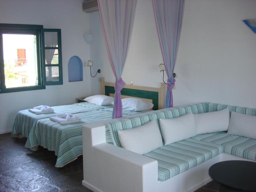With air conditioning, soundproofing, and a private entrance, your studio becomes a peaceful retreat after a day of exploring Leros. One child up to 9 years old stays free, making it a lovely option for young families, too.